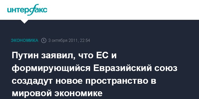 Путин заявил, что ЕС и формирующийся Евразийский союз создадут новое пространство в мировой экономике