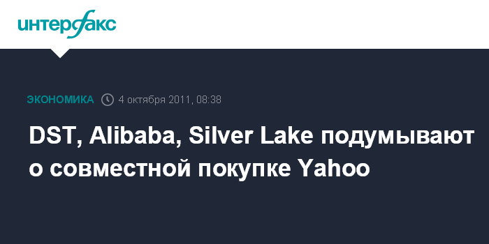 Москва. 4 октября. INTERFAX.RU - Фонд частных инвестиций Silver Lake, китайская Alibaba Group Holding Ltd., российская Digital Sky Technologies обсуждают возможность подачи совместного предложения на покупку поисковика Yahoo Inc, сообщило агентство Bloomberg со ссылкой на информированные источники.