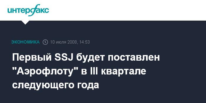 Первый SSJ будет поставлен "Аэрофлоту" в III квартале следующего года
