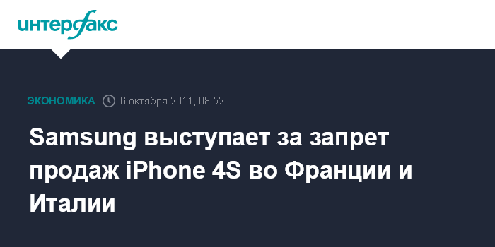 Сеул. 6 октября. INTERFAX.RU - Южнокорейская Samsung Electronics Co. попытается добиться запрета на продажи новой модели iPhone 4S Apple во Франции и Италии, пишет The Wall Street Journal.