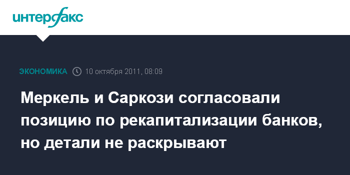 Меркель и Саркози согласовали позицию по рекапитализации банков, но детали не раскрывают