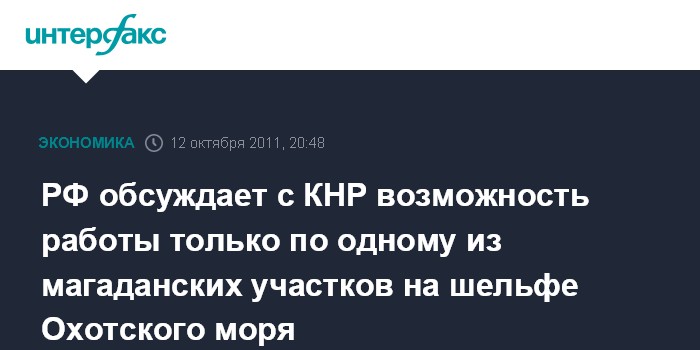 Черемушки (Хакасия). 12 октября. INTERFAX.RU - Российская сторона обсуждает с Китаем возможность работы только по одному из трех магаданских участков на шельфе Охотского моря, сообщил журналистам вице-премьер РФ Игорь Сечин.