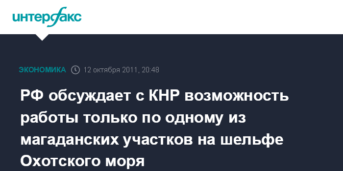 РФ обсуждает с КНР возможность работы только по одному из магаданских участков на шельфе Охотского моря