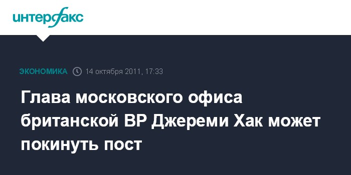 Глава московского офиса британской ВР Джереми Хак может покинуть пост