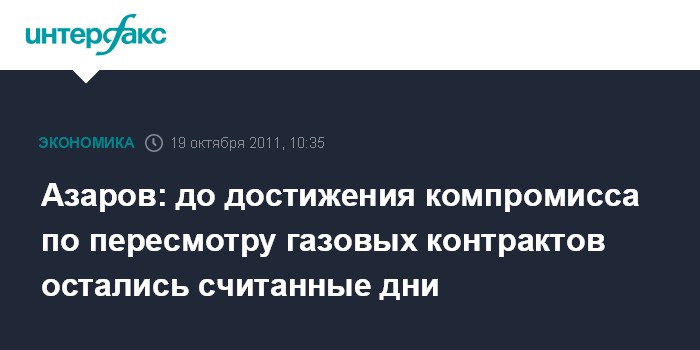 Санкт-Петербург. 19 октября. INTERFAX.RU - Поиск компромиссного решения по пересмотру украино-российских газовых контрактов близок к завершению, заявил премьер-министр Украины Николай Азаров.