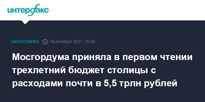 Москва. 19 октября. INTERFAX.RU - Проект бюджета Москвы на 2012 год и плановый период 2013-2014 годов одобрен в первом чтении на заседании Мосгордумы в среду.