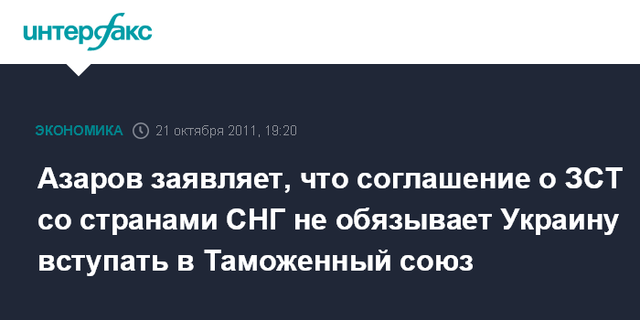 Азаров заявляет, что соглашение о ЗСТ со странами СНГ не обязывает Украину вступать в Таможенный союз