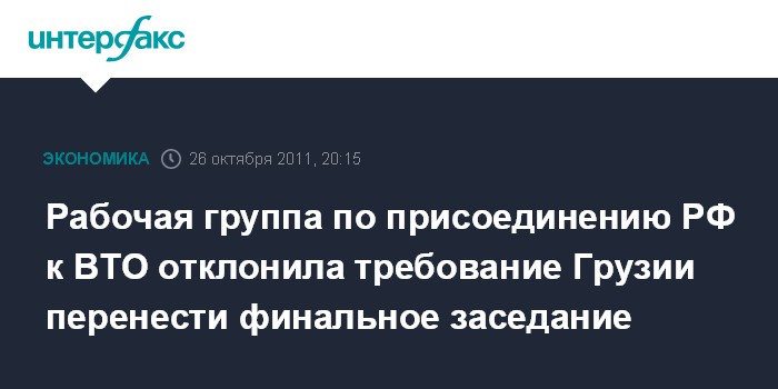 Рабочая группа по присоединению РФ к ВТО отклонила требование Грузии перенести финальное заседание