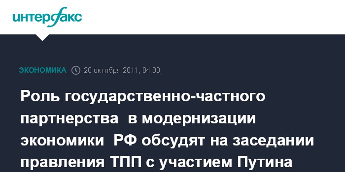 Роль государственно-частного партнерства в модернизации экономики РФ обсудят на заседании правления ТПП с участием Путина