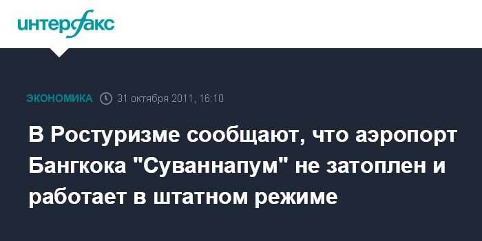 В Ростуризме сообщают, что аэропорт Бангкока "Суваннапум" не затоплен и работает в штатном режиме