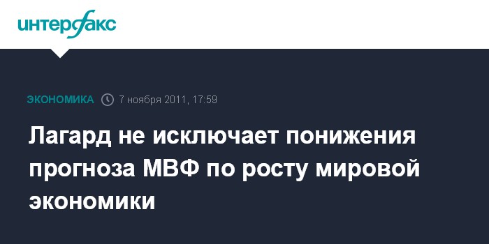 Выступая с лекцией в Государственном университете Минфина РФ в Москве в понедельник, Лагард напомнила, что в сентябре МВФ уже пересмотрел в сторону понижения свой прогноз роста мирового ВВП в 2011 году.