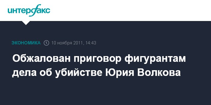 Обжалован приговор фигурантам дела об убийстве Юрия Волкова