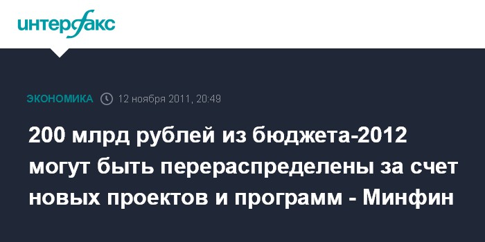 200 млрд рублей из бюджета-2012 могут быть перераспределены за счет новых проектов и программ - Минфин