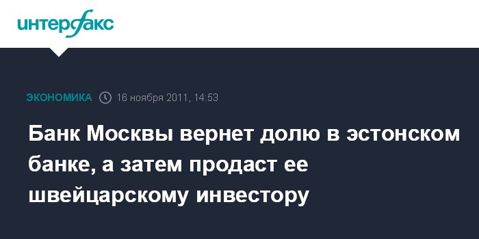 Банк Москвы вернет долю в эстонском банке, а затем продаст ее швейцарскому инвестору