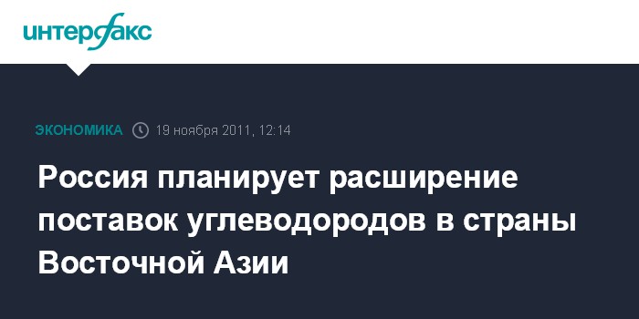 Россия планирует расширение поставок углеводородов в страны Восточной Азии