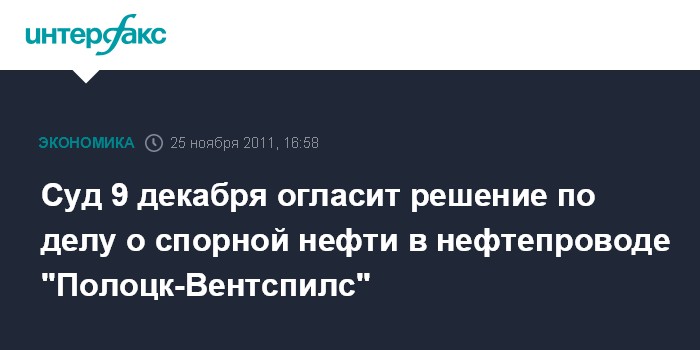 Суд 9 декабря огласит решение по делу о спорной нефти в нефтепроводе "Полоцк-Вентспилс"