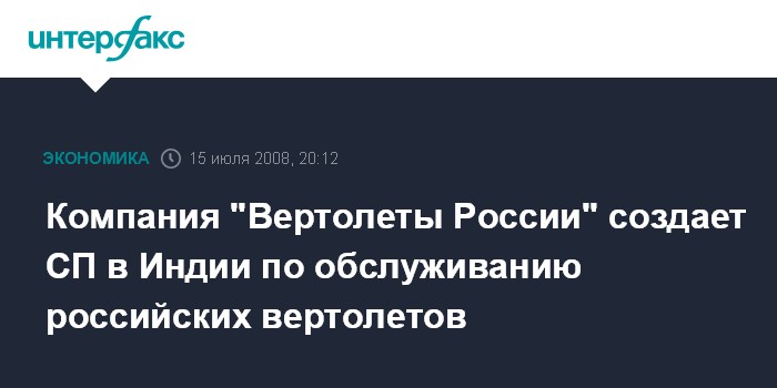 "Это совместное предприятие предназначено для обслуживания вертолетов марки "Ми", которые эксплуатируются в Индии, а также для продвижения наших вертолетов на этом рынке", - сказал при подписании генеральный директор компании "Вертолеты России" Андрей Шибитов.