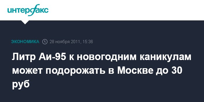 Москва. 28 ноября. INTERFAX.RU - Стоимость 95-го бензина на московских автозаправках к новогодним каникулам может вырасти до 30 рублей за литр, прогнозирует директор по маркетингу ИАЦ "Кортес" Павел Строков.