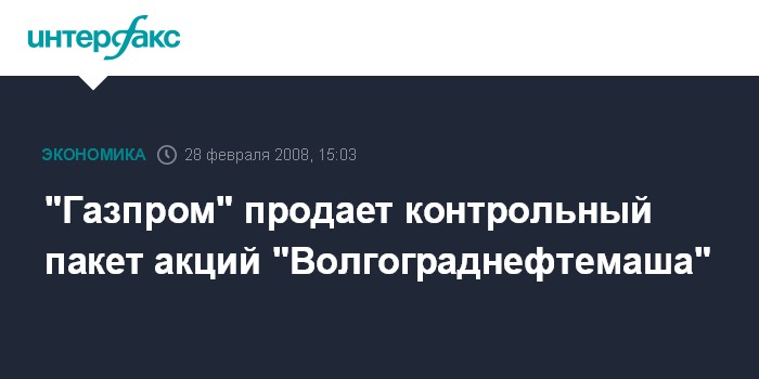 Волгоград. 28 февраля. INTERFAX.RU - ОАО "Газпром" выставило на торги контрольный пакет (51,5%) акций ОАО "Волгограднефтемаш" (Волгоград), сообщил агентству "Интерфакс" представитель волгоградского предприятия.