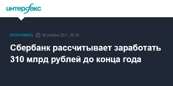 Сбербанк рассчитывает заработать 310 млрд рублей до конца года