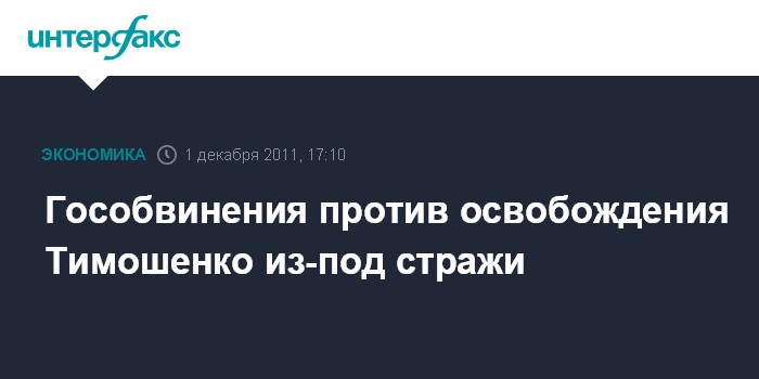 Киев. 1 декабря. INTERFAX.RU - Представители гособвинения по "газовому делу" экс-премьера Украины Юлии Тимошенко не видят оснований для освобождения ее из-под стражи.