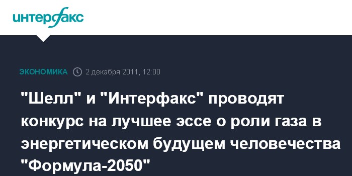 "Шелл" и "Интерфакс" проводят конкурс на лучшее эссе о роли газа в энергетическом будущем человечества "Формула-2050"