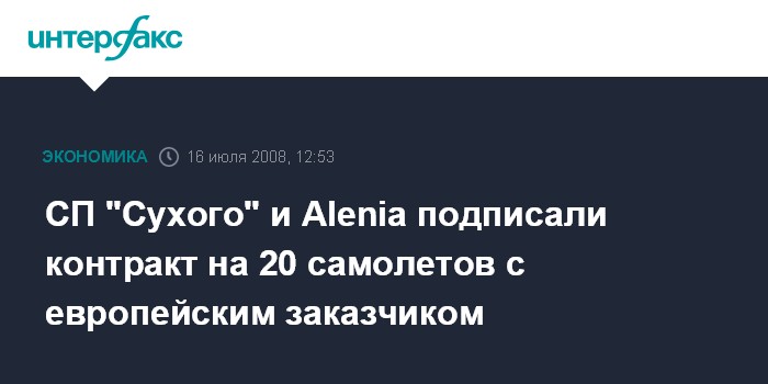 СП "Сухого" и Alenia подписали контракт на 20 самолетов с европейским заказчиком
