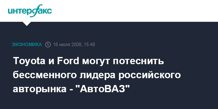 Toyota и Ford могут потеснить бессменного лидера российского авторынка - "АвтоВАЗ"