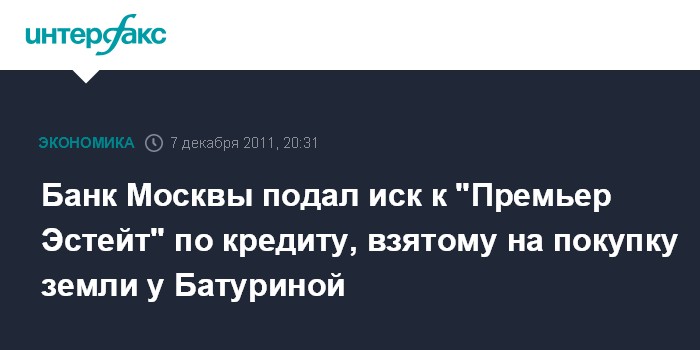 Банк Москвы подал иск к "Премьер Эстейт" по кредиту, взятому на покупку земли у Батуриной
