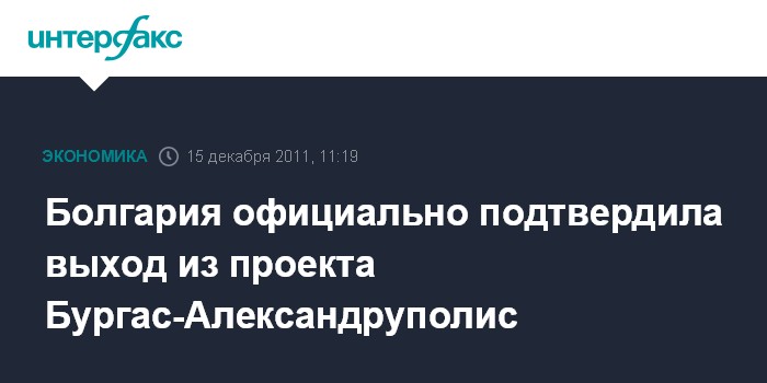 Москва. 15 декабря. INTERFAX.RU - МИД РФ подтвердил получение официального уведомления от Болгарии о ее выходе из проекта нефтепровода Бургас-Александруполис.