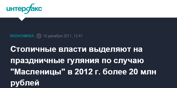 Столичные власти выделяют на праздничные гуляния по случаю "Масленицы" в 2012 г. более 20 млн рублей