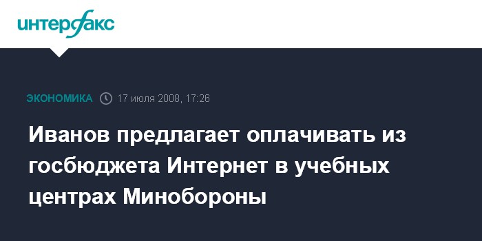 Петрозаводск. 17 июля. INTERFAX.RU - Вице-премьер Сергей Иванов обратился к президенту РФ Дмитрию Медведеву с просьбой выделить средства из федерального бюджета на оплату Интернета, проведенного в учебные центры министерства обороны РФ.
