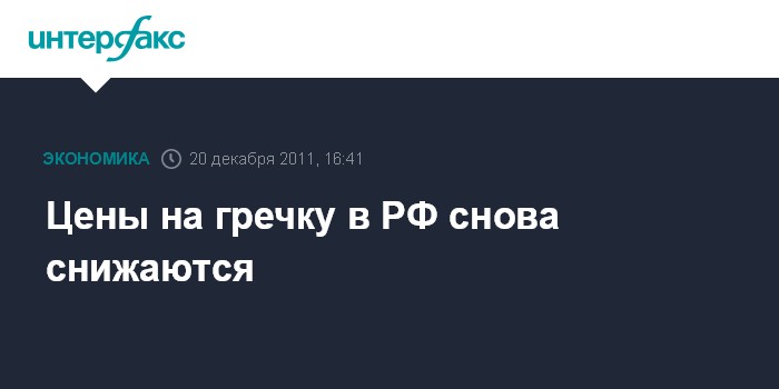 Москва. 20 декабря. INTERFAX.RU - Цены на гречневую крупу, неожиданно повысившиеся на неделе со 2 по 9 декабря, на минувшей неделе вернулись на прежнюю траекторию снижения.