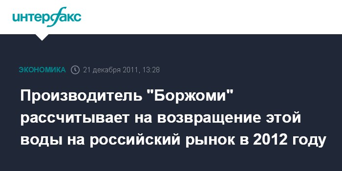 Москва. 21 декабря. INTERFAX.RU - IDS Borjomi International, производитель минеральной воды "Боржоми", рассчитывает на возвращение своей продукции на российский рынок в 2012 году, говорится в сообщении компании.