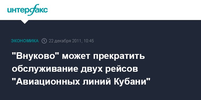 Краснодар. 22 декабря. INTERFAX.RU - Аэропорт "Внуково" может с пятницы частично приостановить обслуживание рейсов авиакомпании "Авиационные линии Кубани" (АЛК), следующих по маршрутам Москва-Стамбул и Москва-Краснодар, говорится в сообщении пресс-службы аэропорта.