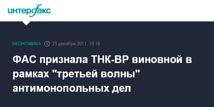 ФАС признала ТНК-ВР виновной в рамках "третьей волны" антимонопольных дел