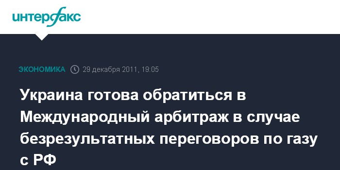 Киев. 29 декабря. INTERFAX.RU - Премьер-министр Украины Николай Азаров заявляет, что украинская сторона не исключает обращения в Международный арбитраж, если не сможет достигнуть взаимопонимания в газовых переговорах с Россией.