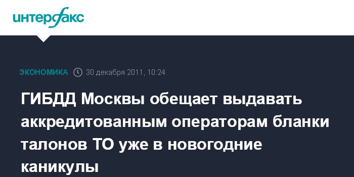 ГИБДД Москвы обещает выдавать аккредитованным операторам бланки талонов ТО уже в новогодние каникулы