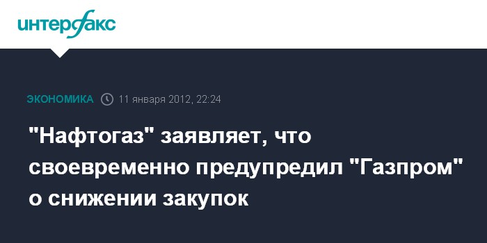 "В связи с этим и в соответствии с положениями контракта и в определенные им сроки, "Нафтогаз Украины" направил в адрес "Газпром" около десяти писем с просьбой согласовать поставки природного газа в Украину в 2012 году в объеме 27 млрд куб. м, которые компания обязуется отобрать и оплатить согласно действующему контракту", - подчеркивает НАК.