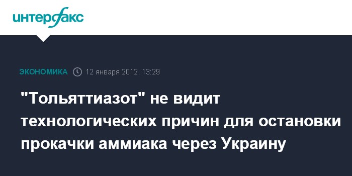Москва. 12 января. INTERFAX.RU - ОАО "Тольяттиазот" считает, что "Укрхимтрансаммиак" прекратил перекачку аммиака, производимого российским предприятием, не по технологическим причинам, говорится в пресс-релизе "Тольяттиазота".