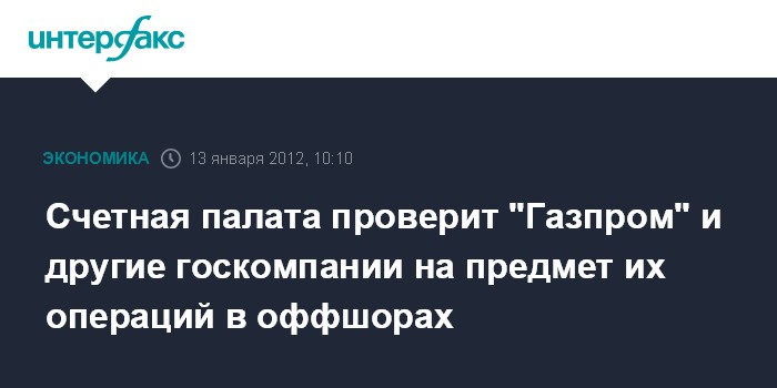 Счетная палата проверит "Газпром" и другие госкомпании на предмет их операций в оффшорах