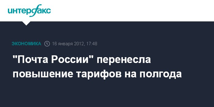 Москва. 17 января. INTERFAX.RU - ФГУП "Почта России" перенесла повышение тарифов на нерегулируемые государством услуги с января на более поздний срок, говорится в сообщении почтового оператора.