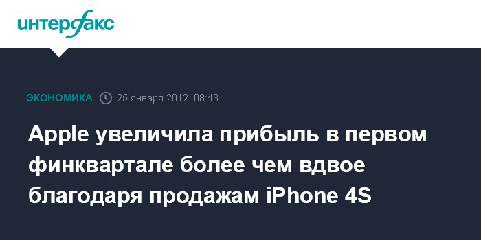 Apple увеличила прибыль в первом финквартале более чем вдвое благодаря продажам iPhone 4S