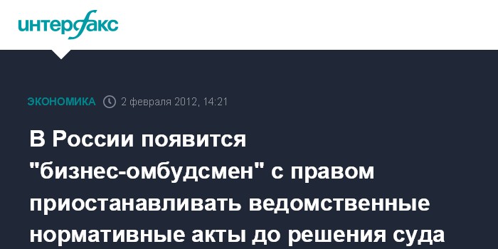 В России появится "бизнес-омбудсмен" с правом приостанавливать ведомственные нормативные акты до решения суда