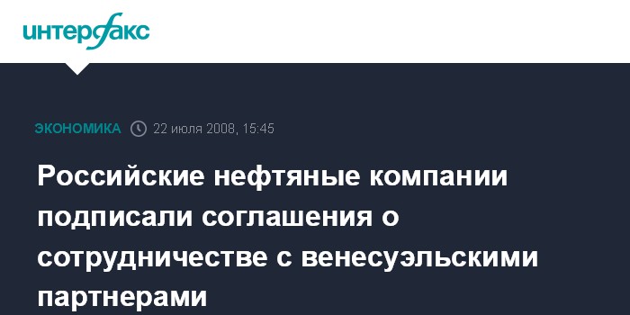 Барвиха (Московская область). 22 июля. INTERFAX.RU - Компании "ТНК-ВР", "ЛУКОЙЛ" и "Газпром" сегодня подписали ряд соглашений с венесуэльскими партнерами.