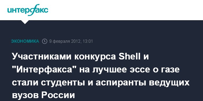 Участниками конкурса Shell и "Интерфакса" на лучшее эссе о газе стали студенты и аспиранты ведущих вузов России