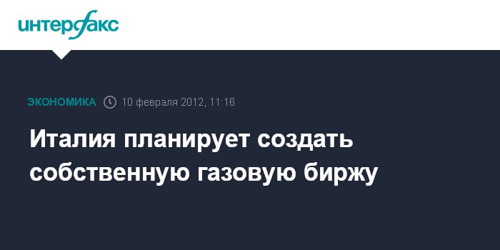 Рим. 10 февраля. INTERFAX.RU - Италия, третий по величине потребитель газа в Европе, планирует создать собственную газовую биржу, чтобы избежать в будущем проблем с поставками, сообщает агентство Bloomberg со ссылкой на заявление министра экономического развития, инфраструктуры и транспорта Коррадо Пассеры.