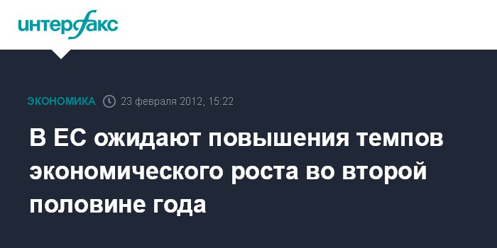 Брюссель. 23 февраля. INTERFAX.RU - Снижение темпа экономического роста в Евросоюзе продлится в течение первых двух кварталов 2012 года, заявил в четверг заместитель председателя Европейской комиссии Олли Рен. По его данным, незначительное наращивание темпа ожидается во второй половине года. "Хотя рост замедлился, мы наблюдаем признаки стабилизации в европейской экономике. Экономические оценки до сих пор остаются на низком уровне, но напряжение на финансовых рынках снижается", - утверждал О.Рен на пресс-конференции в Брюсселе.
