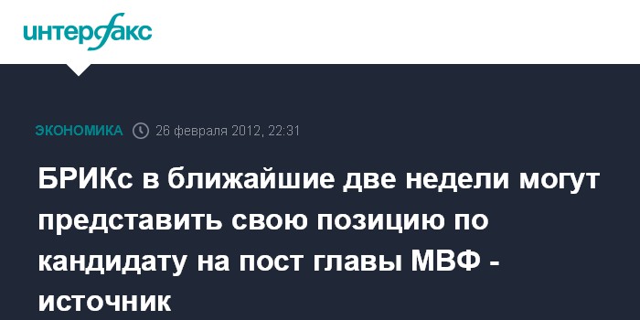 БРИКс в ближайшие две недели могут представить свою позицию по кандидату на пост главы МВФ - источник