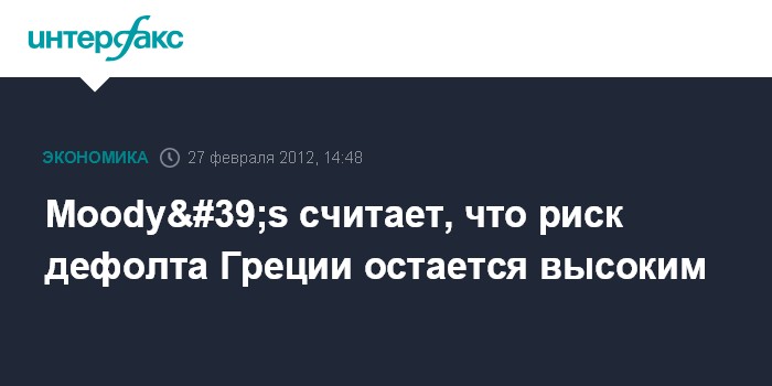 Лондон. 27 февраля. INTERFAX.RU - Риск дефолта Греции остается высоким, несмотря на договоренности о списании существенной части ее госдолга, считают аналитики рейтингового агентства Moody's Investors Service.